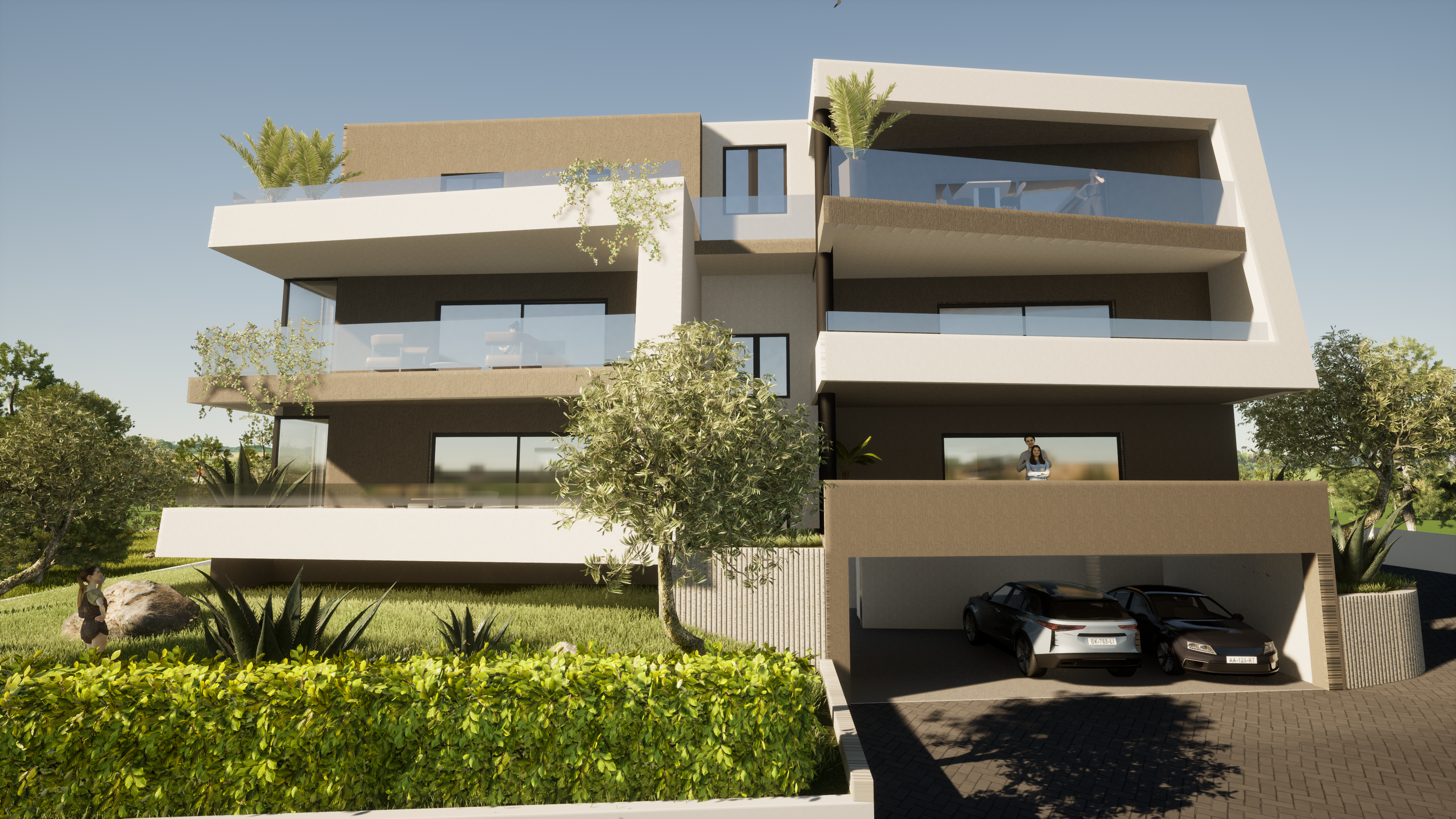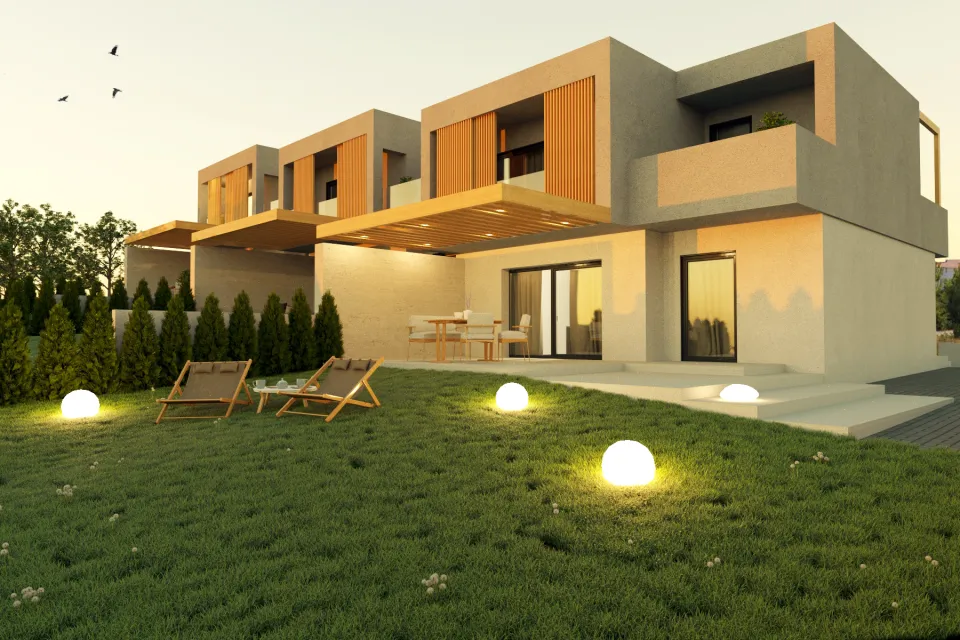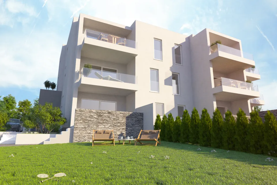 Obiteljska građevina s tri zasebna stana. Svaki stan je zamišljen kao samostalna cjelina sa svojim dvorištem. Trenutno u fazi izvođenja.